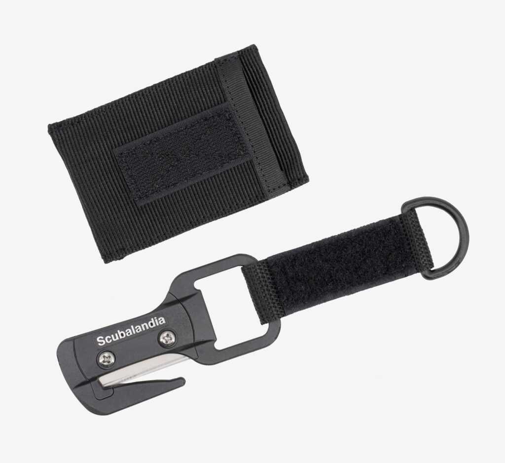 Coltello Tagliasagola Sub con Lama in Ceramica, fornito insieme a piccolo e comodo fodero con passante per nastro da 50 mm.